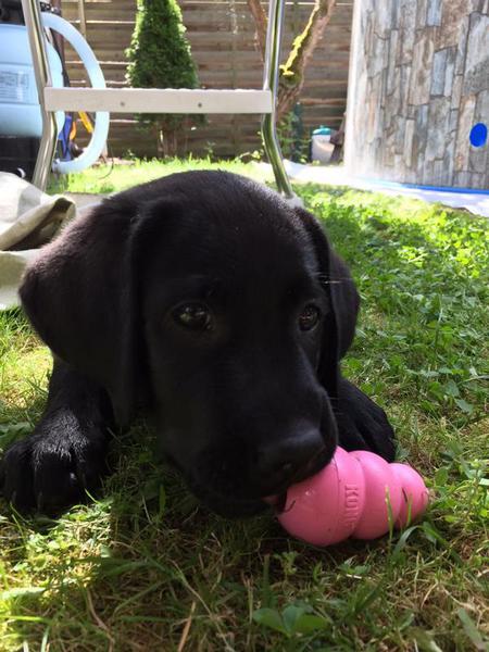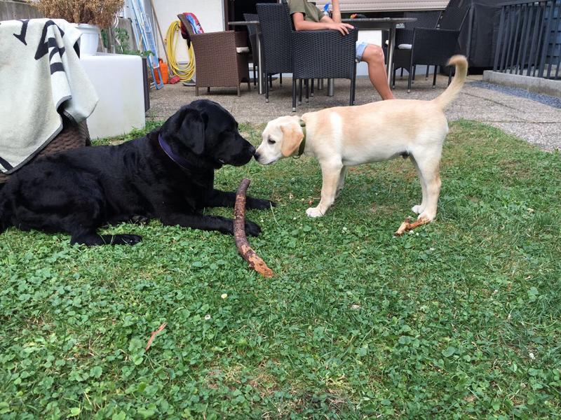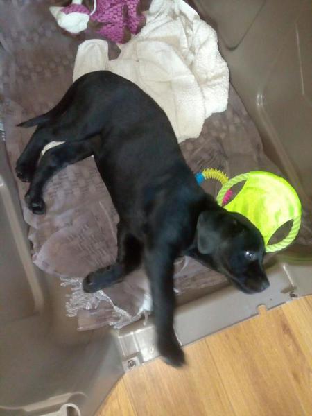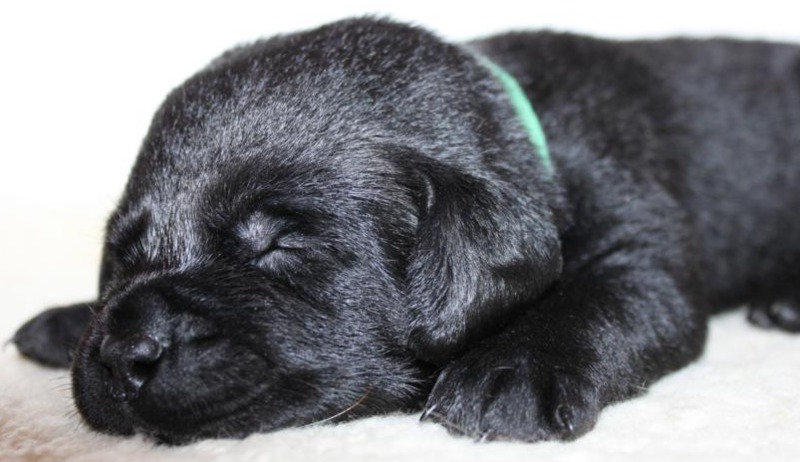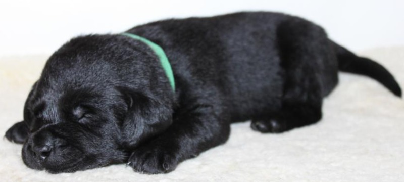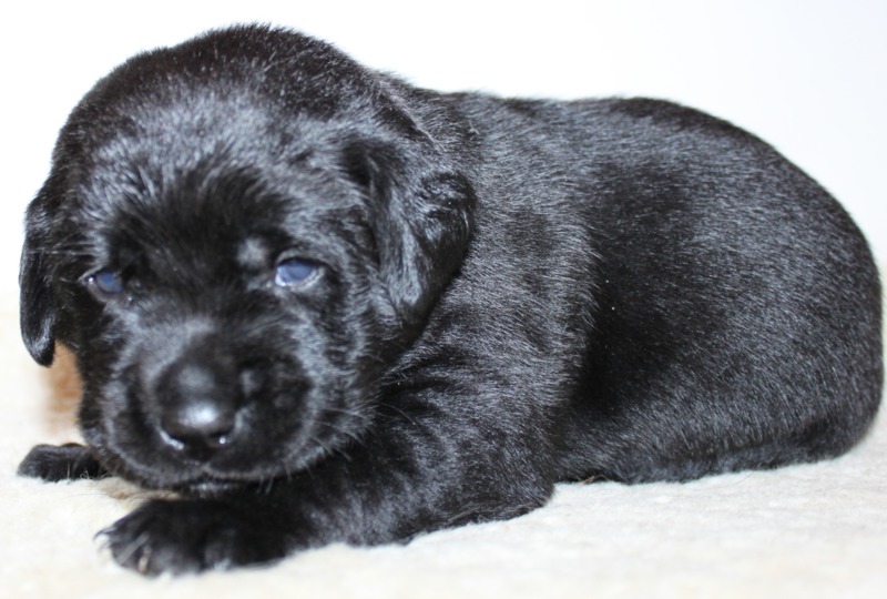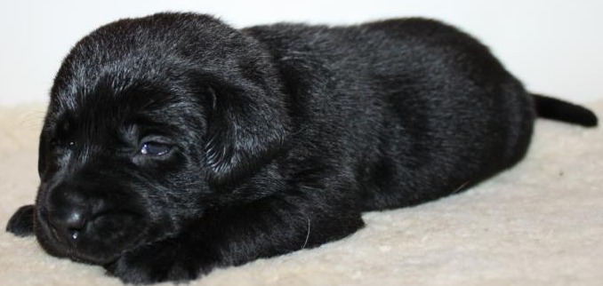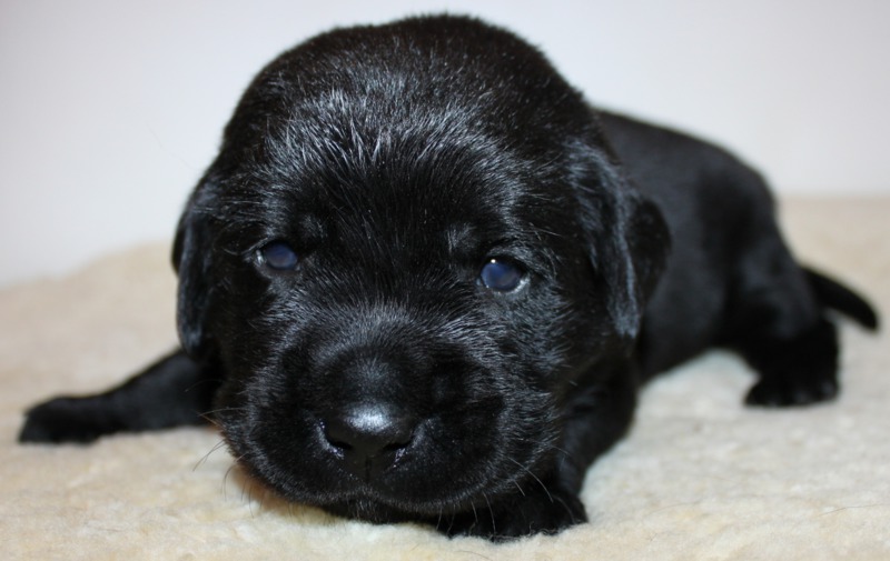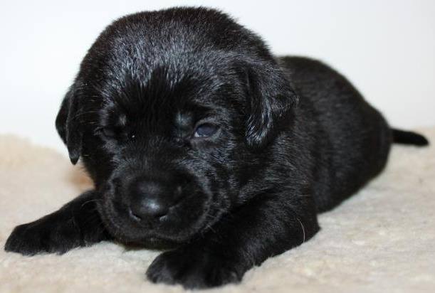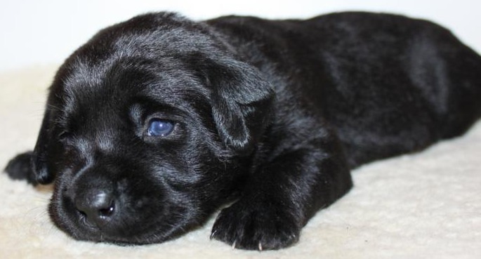 Mama der Welpen ist Myra. Sie ist eine bildhübsche schwarze Hündin und eine Tochter von Lennox.