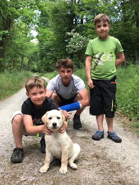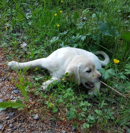 Vater der Welpen ist X-Dream vom Egelsee. Er ist ein sehr schöner, typvoller, gelber (weisser) Rüde.